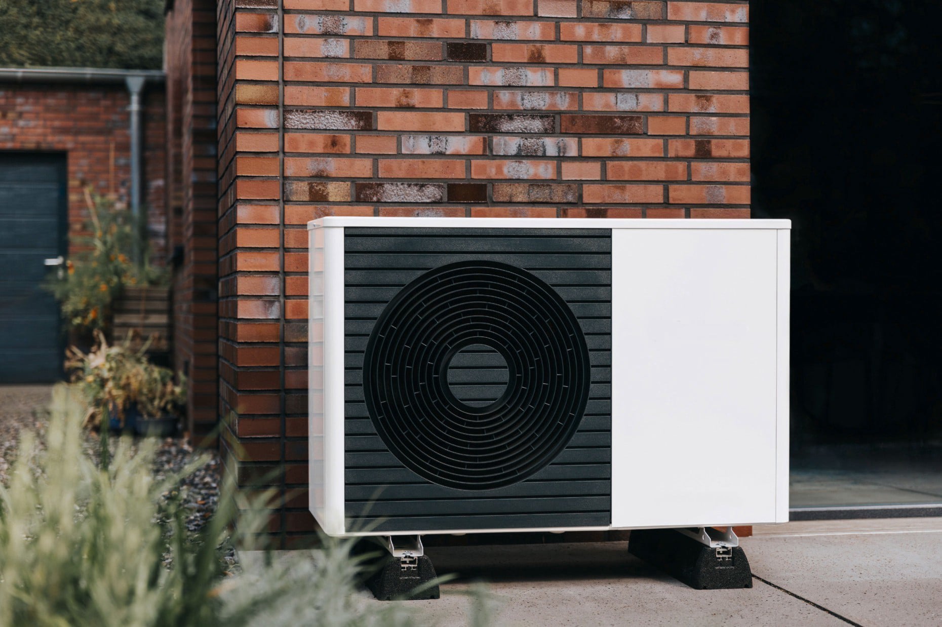 Eine Luft/Wasser-Wärmepumpe nutzt die kostenlose Umweltquelle Luft um Wärme zu erzeugen und leitet diese über Zuleitungen in die Inneneinheit im Heizraum.