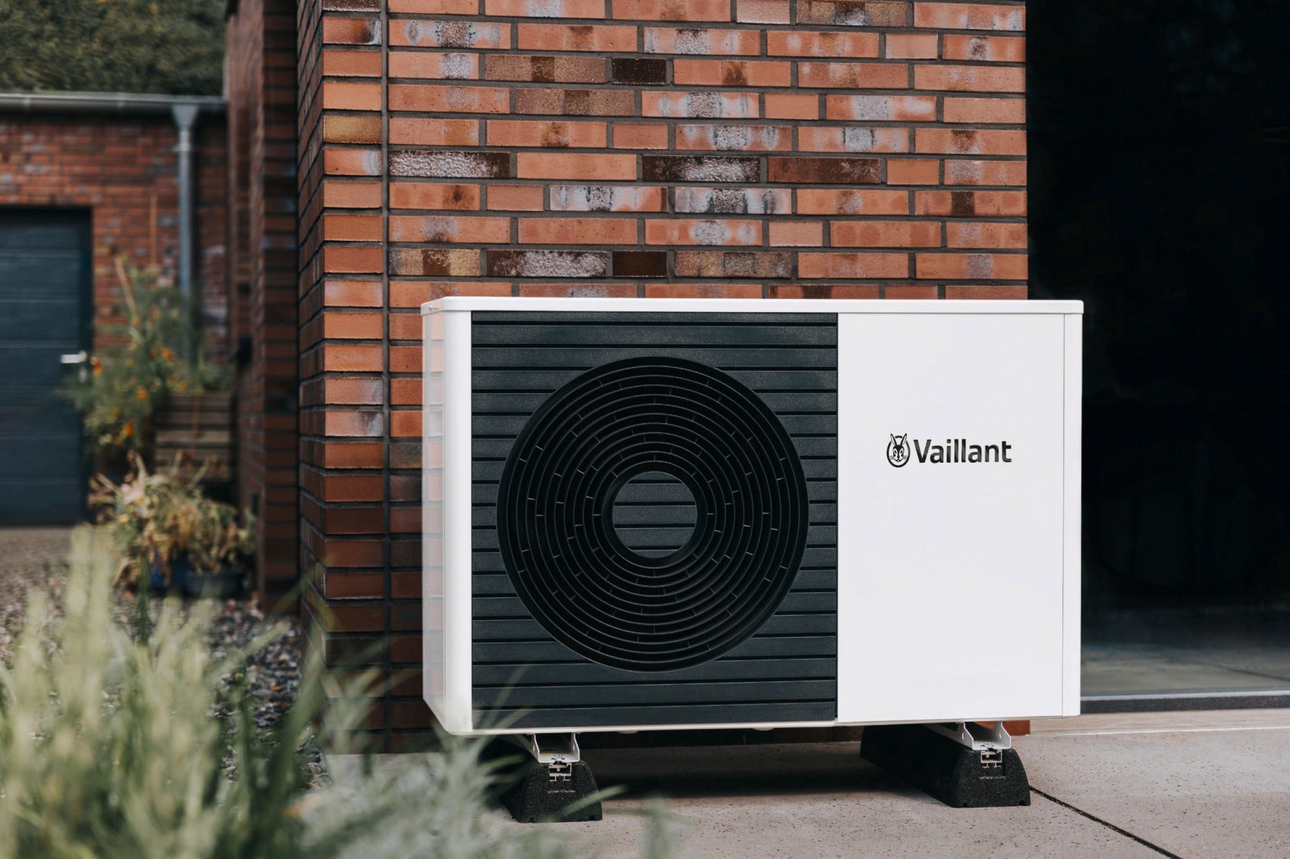 Eine Luft/Wasser-Wärmepumpe nutzt die kostenlose Umweltquelle Luft um Wärme zu erzeugen und leitet diese über Zuleitungen in die Inneneinheit im Heizraum.